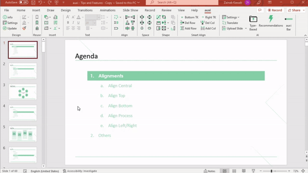 - Also, if you want your agenda settings to follow the layout of another slide in your presentation, you can right click on any slide and press on Set As Agenda Layout.