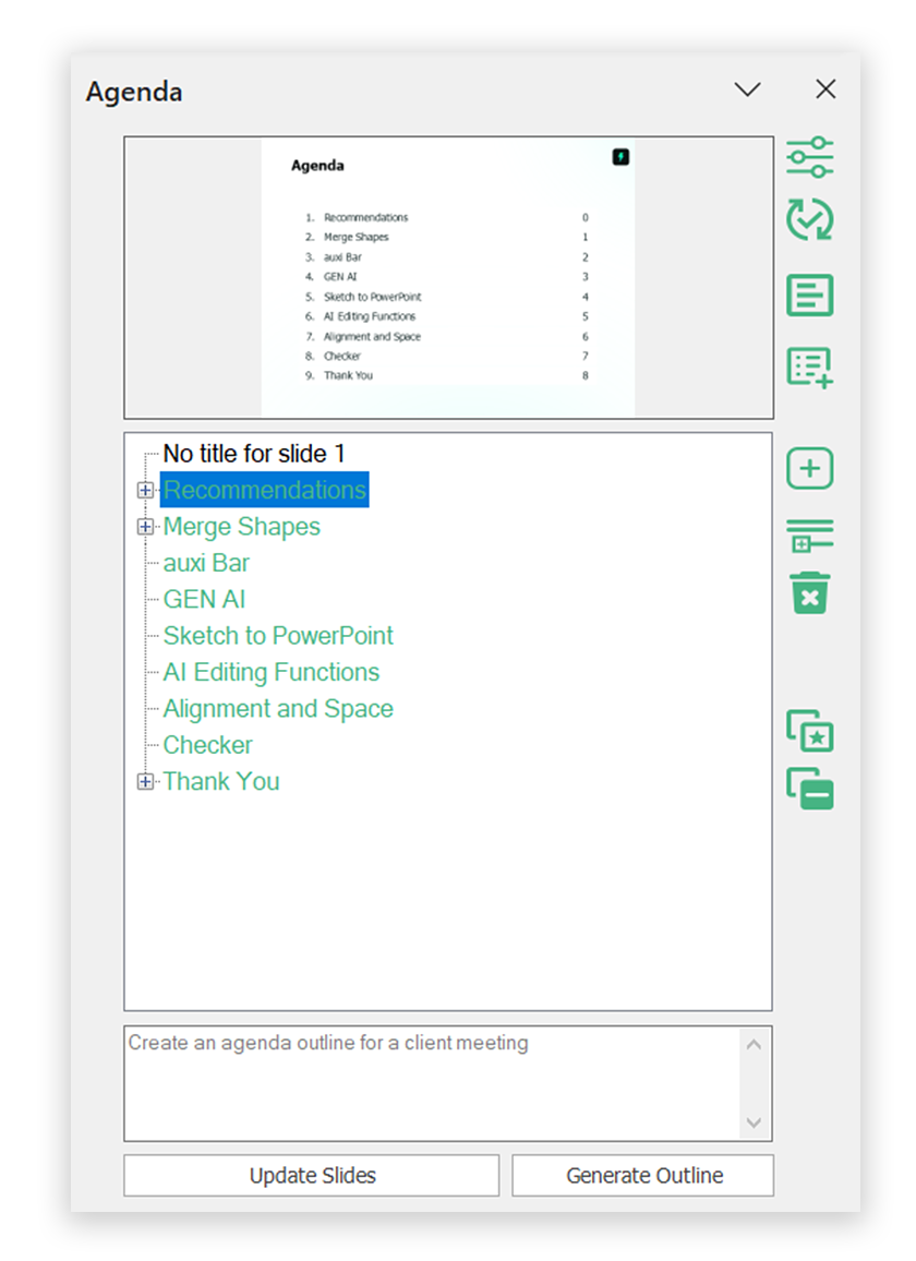 With the Agenda Maker, you can easily generate outlines for your agenda, number it and link it for clients to move to dedicated sections.