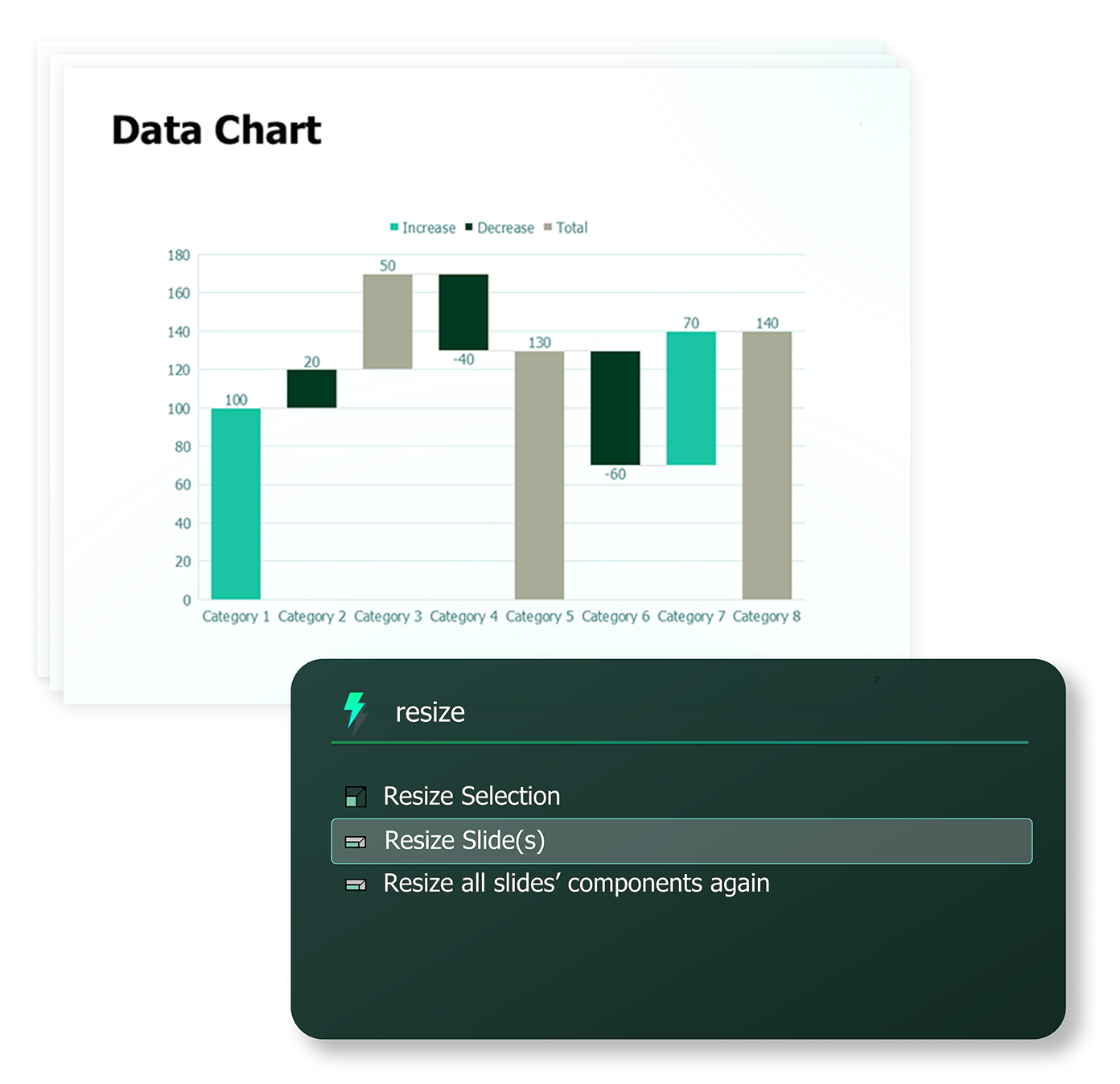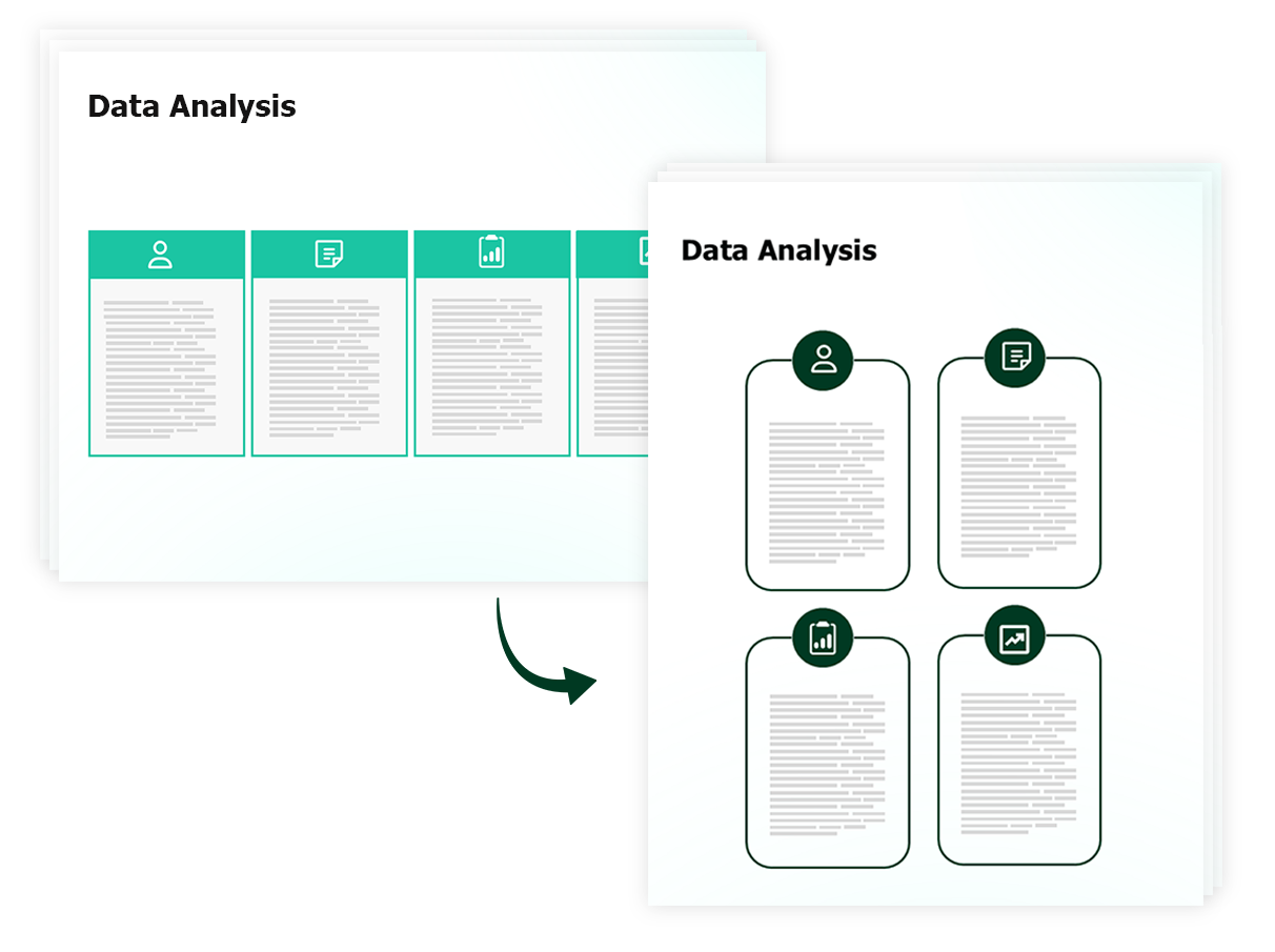 Whether you want to make your deck compliant to your own brand or your client's brand, you can transform the entire deck with one button.
