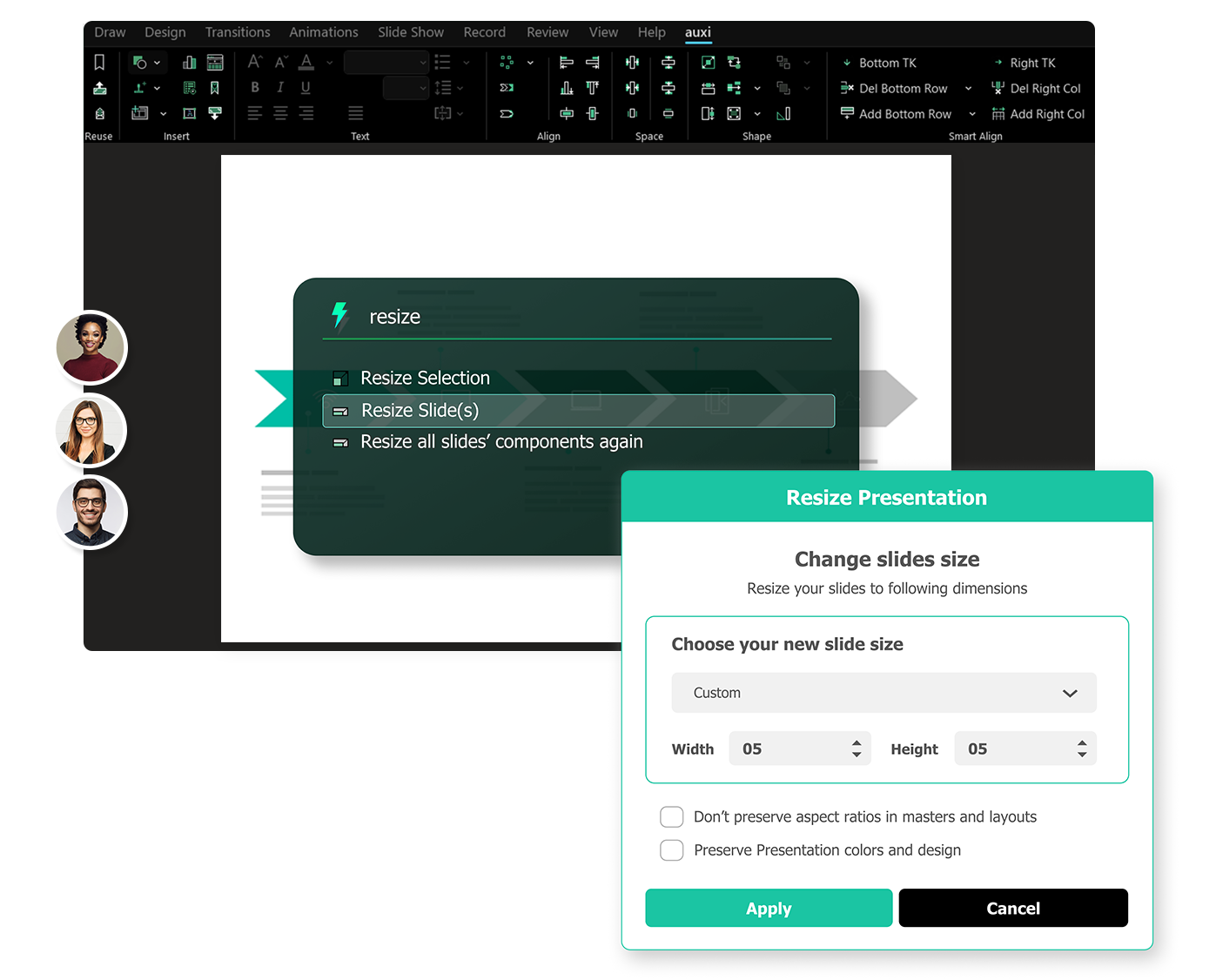 building slides with auxi