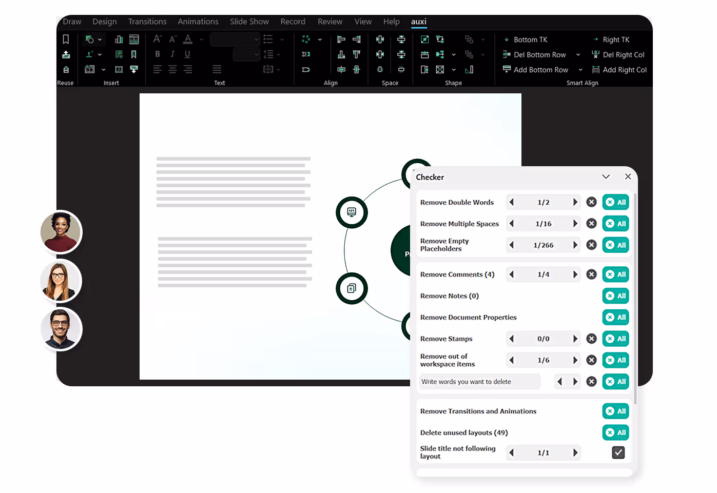 The auxi Checker isn't only for grammar or notes, you can also upload your brand guidelines within the auxi Checker so you never have a slide out of place.