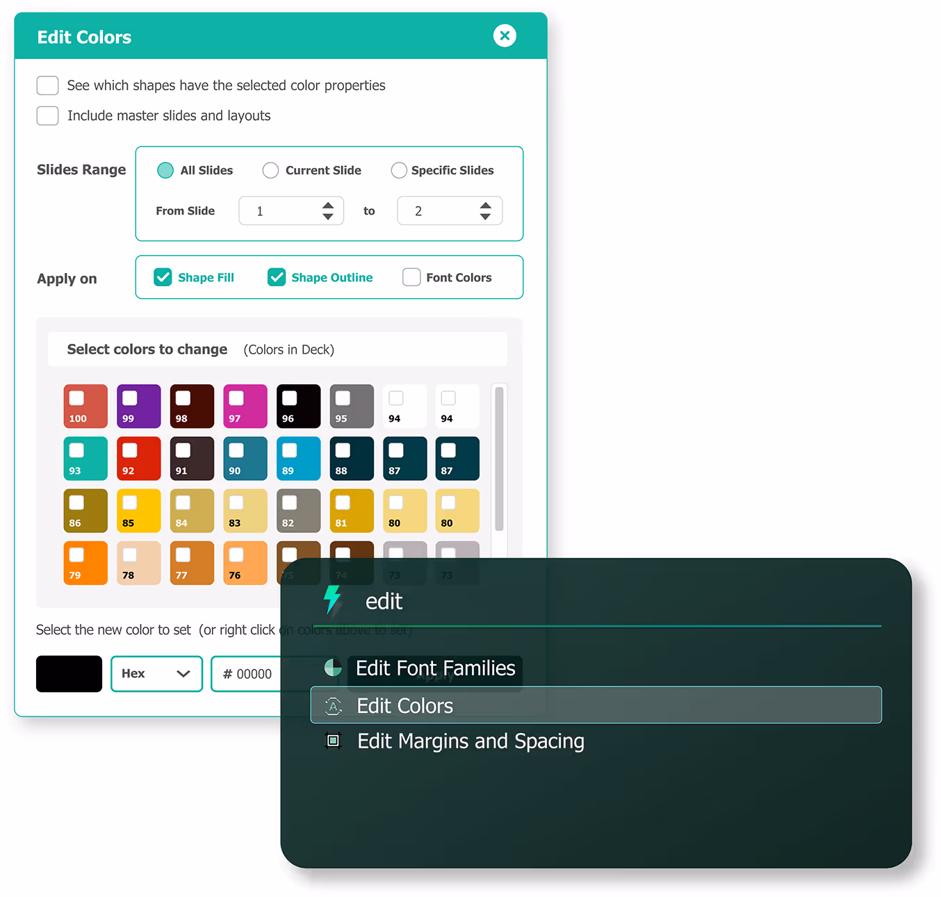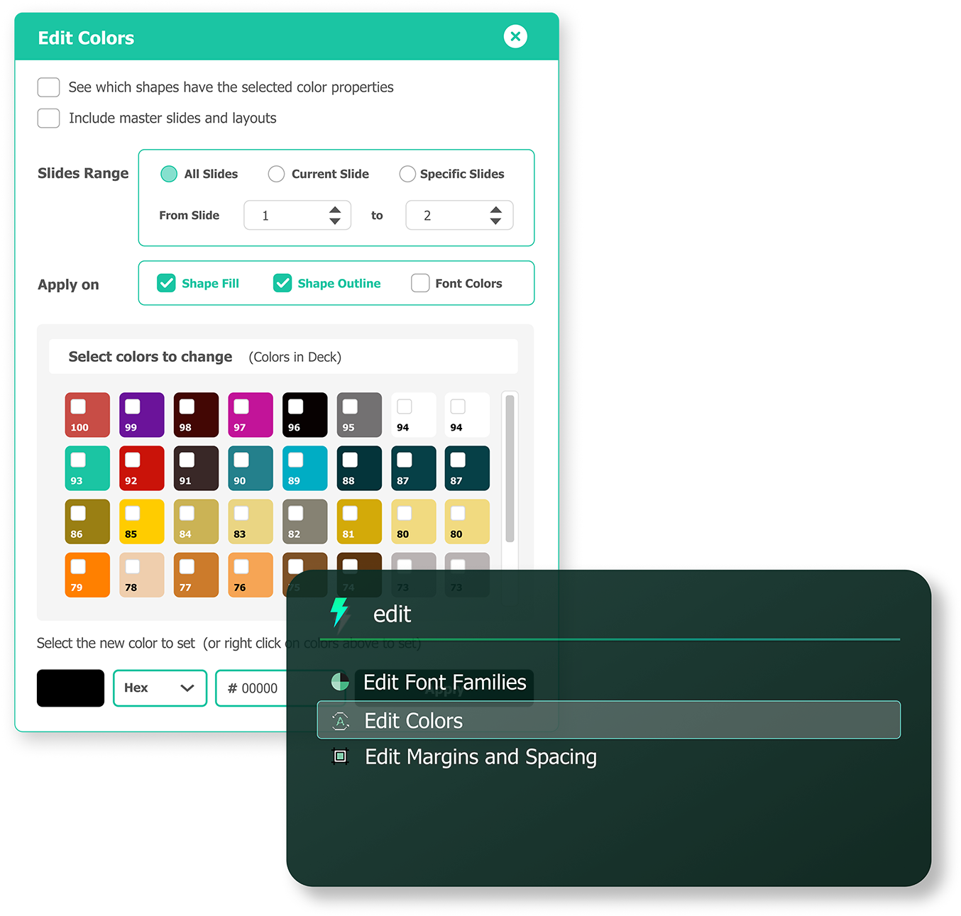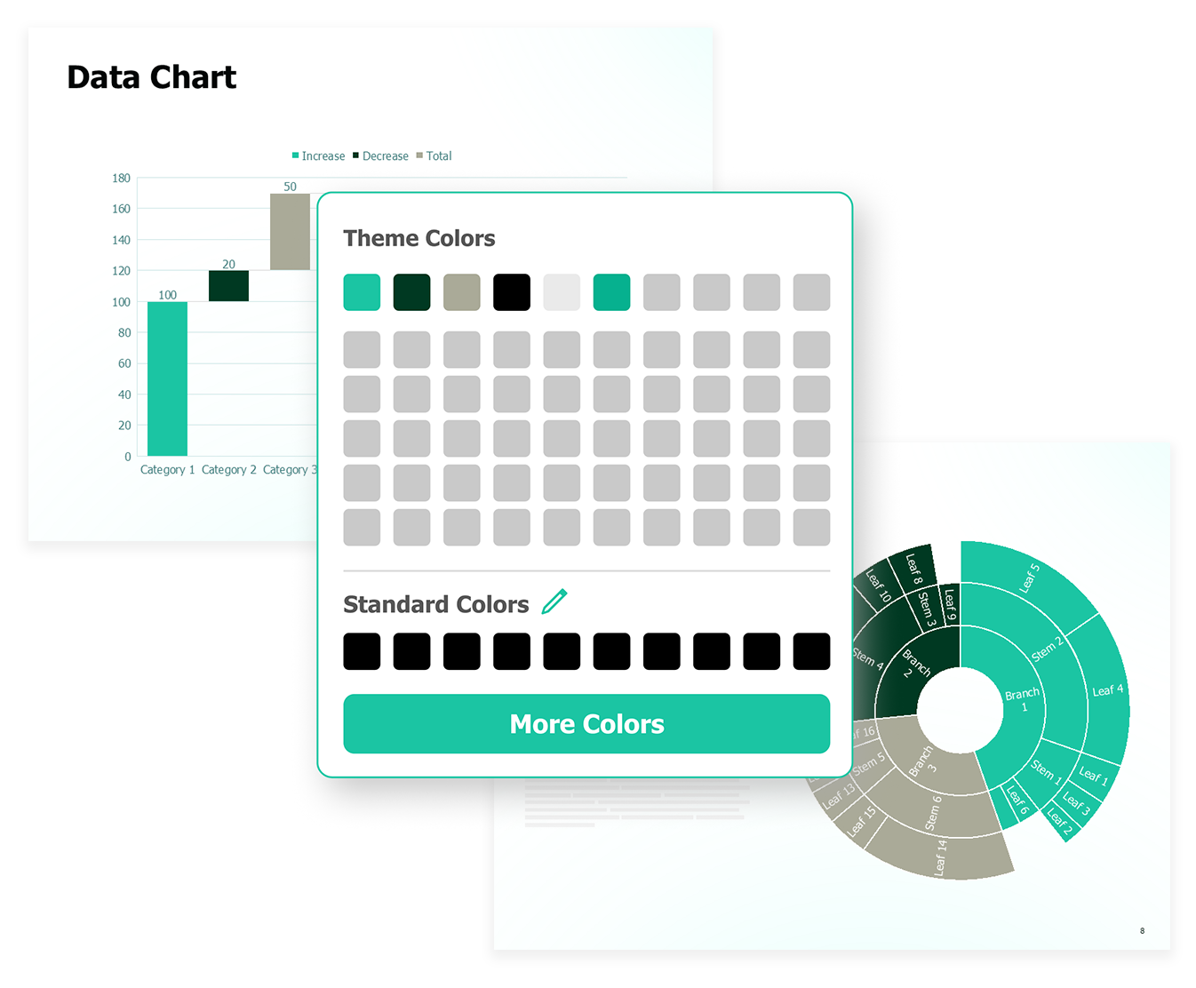 Easily apply your PowerPoint theme’s preset colors to all charts on the slide. This feature is ideal for quickly matching client or brand guidelines.