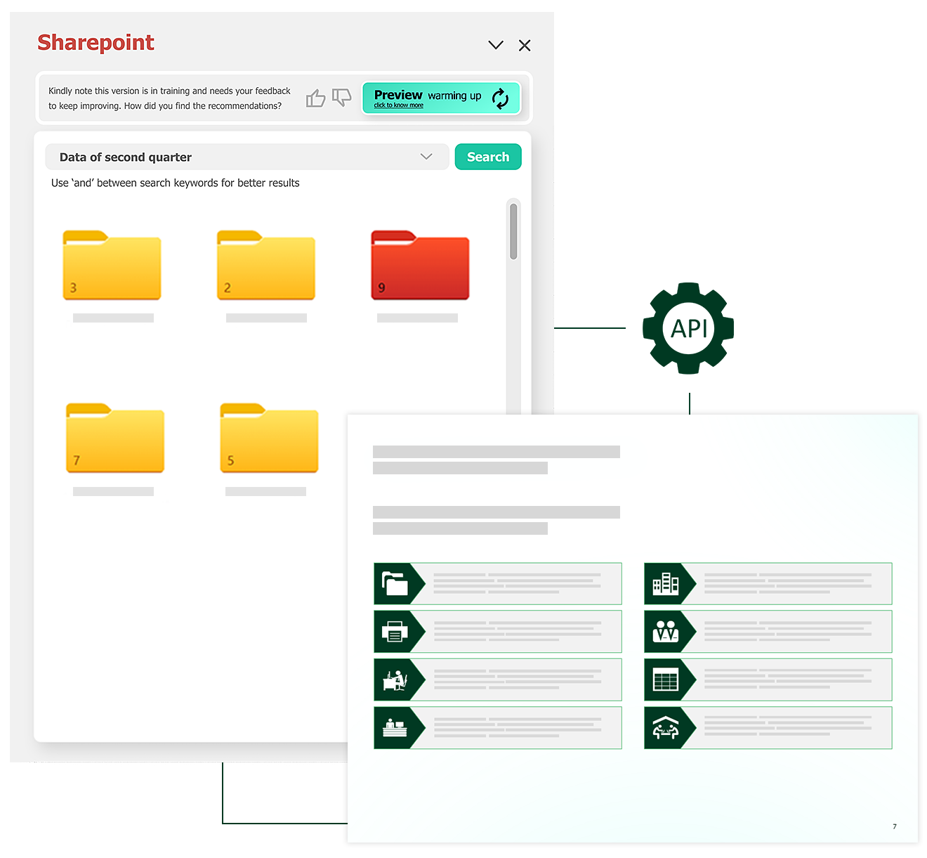 When you connect auxi to Sharepoint, you can access thousands of documents without having to shift windows, securely. Easily pull any data points or reference files you have stored in Sharepoint.
